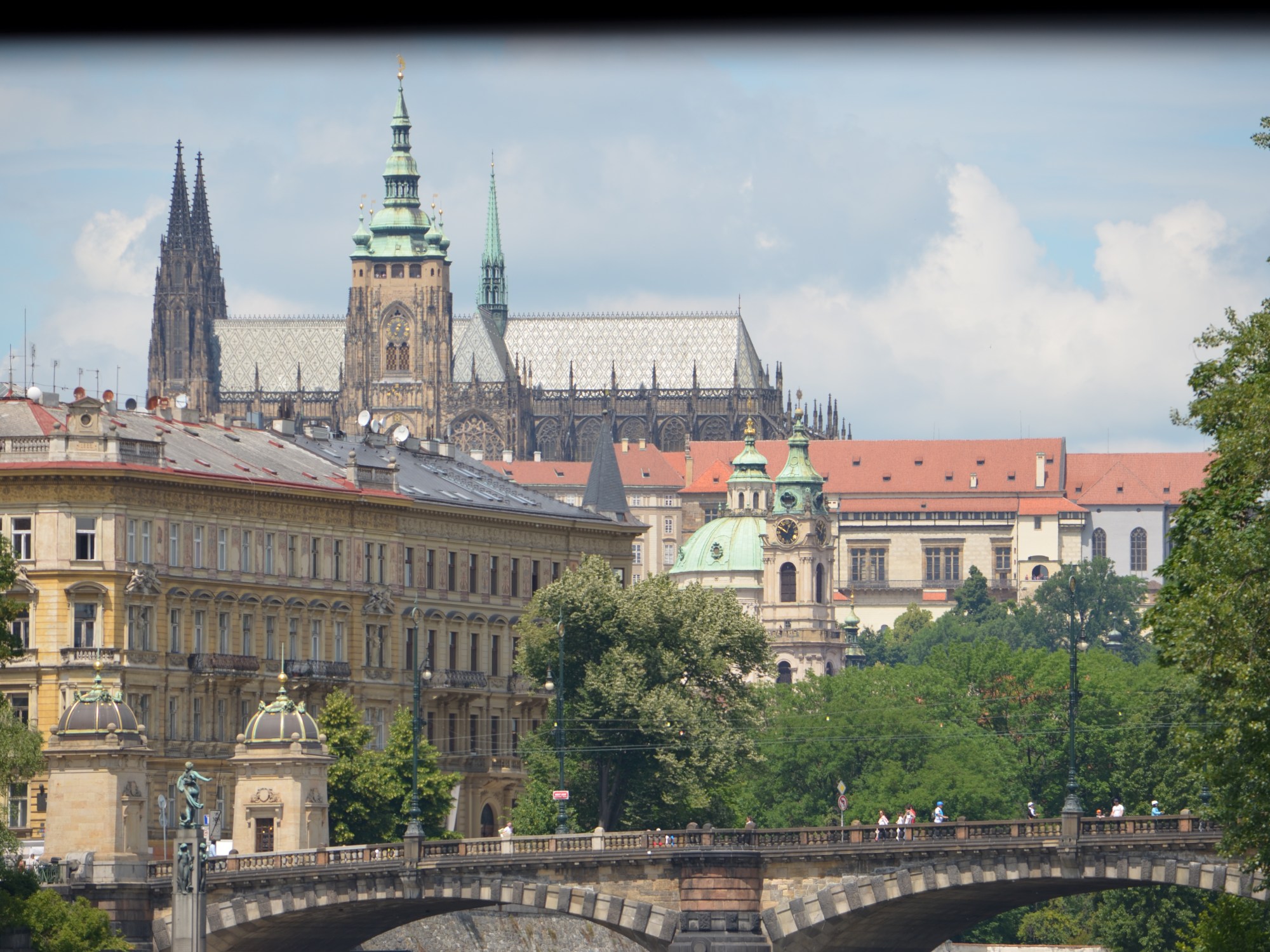Prague Castle (Hradcany) is on the hill across from the main parts of the city. We were able to see bits and pieces of the Changing of the Guards ceremony, but it was pretty crowded and the umbrellas obstructed our view once it started raining. We visited St. Vitus Cathedral, the Royal Palace, St. George’s Basilica, and Zlatá ulička (the Golden Road) on our first day. One of the houses on the Golden Road contained replicas of armor and a small area featuring medieval torture weapons. We threatened Griffin that we were going to add those tools to our repertoire of discipline techniques! Curt and Griffin also visited the Toy Museum while the rest of us relaxed a little longer at an outside cafe. The views of the city from the castle are fantastic! We came back to this area again to visit the museum at the Schwarzenberg Palace on our second full day in the city. We were there at noon, so we got a little better view of the Changing of the Guards from one of the windows! Although there are two other palaces at the castle that now function as museums, we chose the Schwarzenberg since it contains some military artifacts.